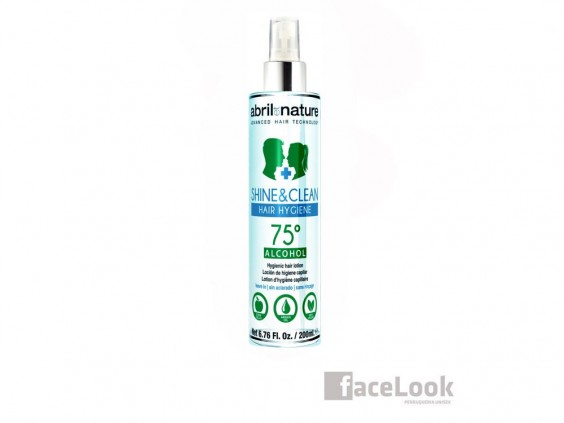 Abril et nature spray shine & clean. Este producto es una loción higienizante, sin aclarado. Proporciona una higiene total del cabello, sin necesidad de agua. Producto 100% vegano. Está compuesto en un grado alcohólico de 75º de alcohol (ethanol), que en porcentaje equivale en peso del 70% de alcohol (ethanol). Shine & clean esta formulado especialmente, para la higiene del cabello, pero también se puede aplicar en el cuero cabelludo y en la piel. Su composición del alcohol y aceites hidratantes, actúan como un microbicida por un tiempo más largo. Deja el cabello más brillante, sedoso y con un tacto final suave.