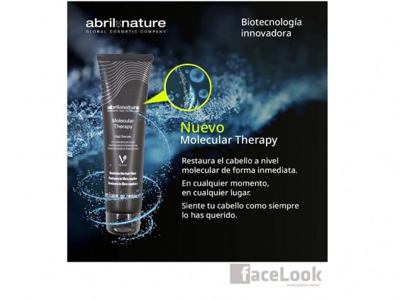 Abril et nature sérum molecular therapy. Rellena la fibra capilar a nivel molecular. Este tratamiento de células madre, crea enlaces múltiples, dentro de la queratina del cabello. Sérum sin aclarado que repara, fortalece el crecimiento y lo devuelve a su estado natural. Ideal para cabellos que se rompen, que están castigados por coloración, decoloración o alisados, además de que evita la rotura. Evita el encrespamiento, reestructura, regenera la fibra interior y sella las puntas abiertas. Aporta brillo, facilita el desenredar y ayuda a peinar. No se debe aplicar en la raíz, solo de medios a puntas, si tenemos un cabello fino o con tendencia a engrasarse.