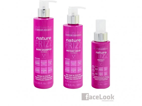 Abril et nature pack nature frizz. Ideal para cabellos secos y con encrespamiento. Control total del encrespamiento, repara la fibra capilar y deja un movimiento natural al cabello. Compuesta por aminoácidos de queratina vegetal, acondicionadores de carga positiva, aceite de babassú y manteca de karité. Alinea la fibra capilar, con un efecto que dura, hasta 30 días. Permite usar la plancha o el sacador sin miedos.