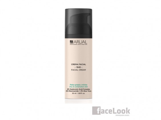 Arual crema facial pieles grasas y mixtas. Es una crema antiedad, que está formulada específicamente, para pieles grasas, mixtas o con tendencia acneica. Está compuesta de un 4% de ácido hialurónico complex, más un 4% de niacinamida, y un 2% de aloe vera. Indicada para piles que necesitan una buena regulación de sebo. El exceso de este, produce brillos faciales, acné, puntos negros, poros dilatados, espinillas y además una textura irregular. En este tipo de pieles, es muy importante hidratar y regular la segregación de grasa. Crema de rápida absorción, sin dejar la piel con sensación grasa. Sus efectos antiedad, se notan desde la primera aplicación.