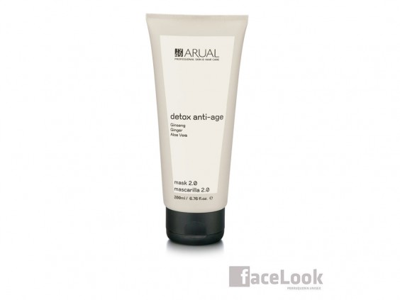 Arual mascarilla detox anti age 2.0 Esta mascarilla esta formulada con ingredientes naturales, como ginseng y aloe vera, que evita la contaminación ambiental y la polución.
