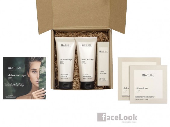 Arual pack detox anti age. Este tratamiento de cuatro productos, es ideal para cabellos sin brillo, dañados, secos y estresados. Detoxifica el cabello, realizando una limpieza profunda, incluso del cuero cabelludo. Su concentrado shock repara y rellena la fibra capilar. Sus efectos son visibles, desde la primera aplicación. Cabello más fuerte, brillante, sedoso y con más cuerpo.