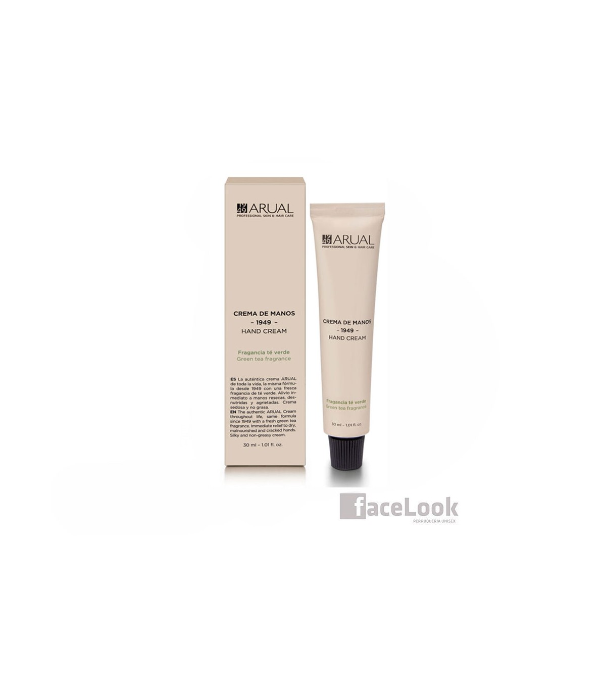 Arual crema de manos 1949 hand cream. Es ideal para el cuidado de las manos en cualquier caso. Tiene una fragancia fresca a té verde. Protege y repara las manos agrietadas, secas o ásperas. También cuida del viento, el frio y el sol o de la manipulación de tintes, decoloraciones, detergentes, disolventes, etc…Repara la piel en profundidad, regenerándola y evitando la sensación de tirantez. Se absorbe rápidamente y no deja sensación grasa, con una hidratación total. Arual crema de manos fragancia té verde, se puede usar tanto para manos, como para el cuerpo. Otra de sus aplicaciones es, en escoceduras o irritaciones, como después de la depilación o el afeitado. Alivio rápido y reducción de la irritación. En quemaduras o eritemas solares, notaremos efecto instantáneo y una mejora de la piel.