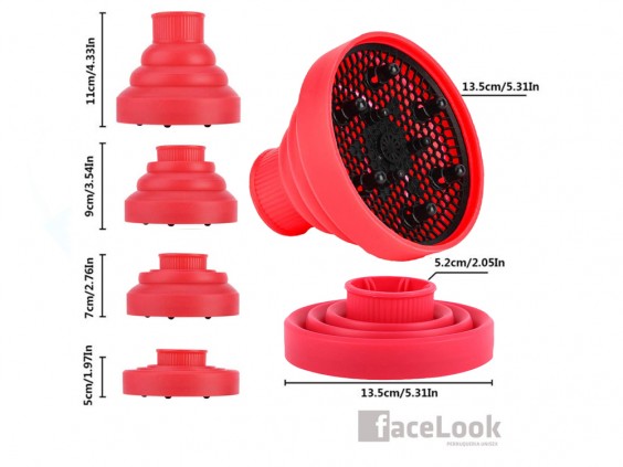 Bifull difusor plegable de silicona rojo universal. El accesorio perfecto, para los secadores de pelo, ya que se acopla a casi todos los modelos y marcas.