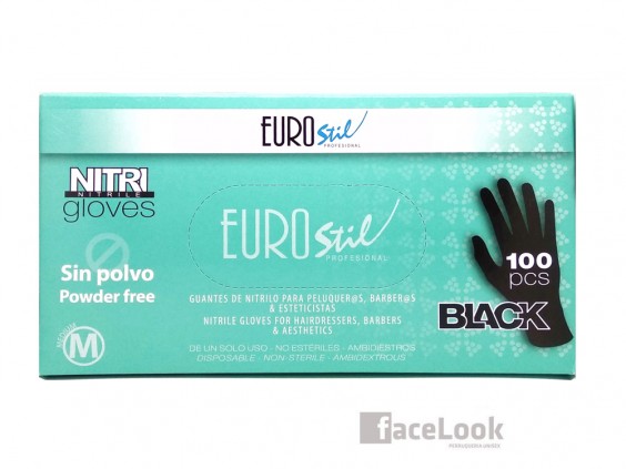 Eurostil guantes de nitrilo sin polvo talla M. Estos guantes son ideales para usar en peluquerías, barberos, esteticistas, etc…