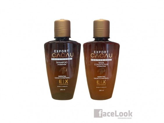 Export cacau pack mantenimiento del alisado. Estos dos productos, son ideales para el mantenimiento de cualquier alisado brasileño. Compuesto de champú hidration Brasil home care sin sal y mascarilla hidration Brasil home care sin sal. Se puede utilizar en cualquier tipo de cabello. Limpia en profundidad, sin agredir el cuero cabelludo. Reduce el frizz de la raíz, dando brillo y no engrasa.