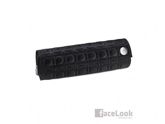 Una funda elegante con sus costuras en círculos, su color negro satinado y sus adornos en color plata con el logo ghd.