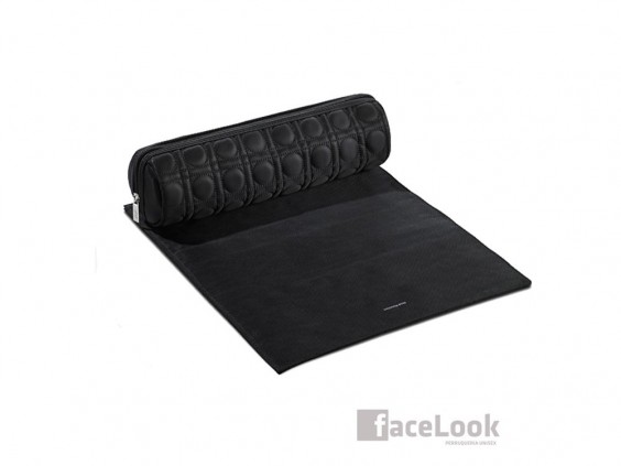 Un neceser con cremallera, recubierto de una alfombrilla desenrollable, que la podemos utilizar para dejar la plancha con total tranquilidad.