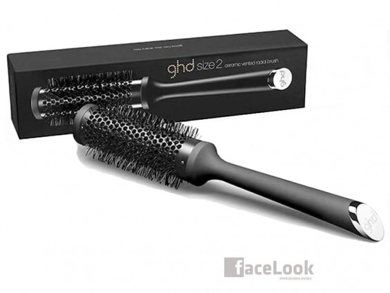 Cepillo cerámico ghd nº2, el retoño de la familia con 35mm. de diámetro. Al igual que el nº1, se puede utilizar tanto para peinar cabellos cortos, como para dar volumen.
