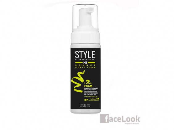 Hipertin bounce curly foam. Espuma capilar de fijación fuerte, de la línea Hi style. Permite dar forma a cualquier tipo de cabello rizado. Cuida, fija y define, con un acabado natural. Se aplica fácilmente, gracias a su fórmula ligera. Bounce curly foam, está compuesta con el 87% de ingredientes, de origen natural.  Forma una capa alrededor del cabello, para protegerlo de las posibles agresiones. Formulada con provitamina B5 y Acido hialurónico. Da nutrición, volumen y brillo a los rizos.