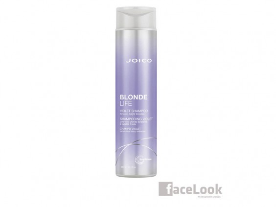 Joico champú violeta blonde life. Este champú de joico, evita el amarilleo de los tonos rubios y grises. Un cabello más fresco, perfecto y sin irritaciones, libre de sulfatos. Compuesto por multi espectro defensa complex, antioxidantes, té verde y protector UV, que evitarán los cambios de tono y la pérdida de color.  Bio advanced péptido encargado de la reconstrucción, desde la cutícula hasta el córtex.