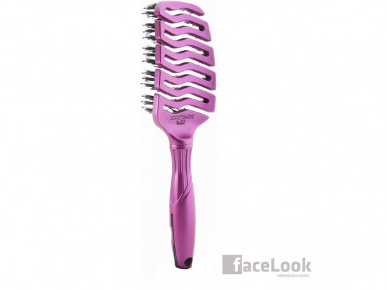 Lim hair cepillo tanglim flex vent fucsia. Fabricado con una estructura curvada, para adaptarse a la forma de la cabeza. Tiene una combinación de púas de nylon y cerdas naturales de jabalí. Es flexible a la hora de cepillar, para no producir roturas en el cabello y permitir desenredar, sin tirones. Favorece un secado más rápido, gracias a que está fabricado con una estructura ventilada. Se debe utilizar con aire frio o tibio, no con máximo calor, para evitar que se dañe. Sus púas de nylon son antiestáticas, tienen bola en la punta con la dureza justa, que permite cepillar suavemente, al mismo tiempo que masajea el cuero cabelludo y estimula el crecimiento. Las cerdas 100% naturales de jabalí, cepillan dejando el pelo con mucho brillo.
