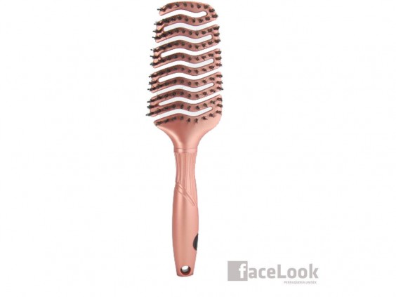 Lim hair cepillo tanglim flex vent rose gold. Fabricado con una estructura curvada, para adaptarse a la forma de la cabeza. Tiene una combinación de púas de nylon y cerdas naturales de jabalí. Es flexible a la hora de cepillar, para no producir roturas en el cabello y permitir desenredar, sin tirones. Favorece un secado más rápido, gracias a que está fabricado con una estructura ventilada. Se debe utilizar con aire frio o tibio, no con máximo calor, para evitar que se dañe. Sus púas de nylon son antiestáticas, tienen bola en la punta con la dureza justa, que permite cepillar suavemente, al mismo tiempo que masajea el cuero cabelludo y estimula el crecimiento. Las cerdas 100% naturales de jabalí, cepillan dejando el pelo con mucho brillo.