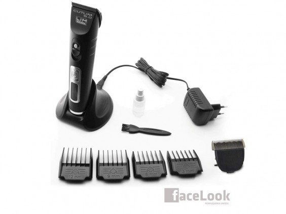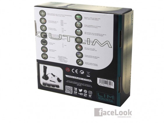 Lim hair maquina cortapelos cutlim 5.0. Una herramienta para el corte de cabello profesional, regulable en altura de corte. Trae peines adicionales, para varios tipos de altura de corte. Tiene una pantalla LCD, que le indica la velocidad, a la que está trabajando la máquina, el nivel de batería, si está en carga y si necesita aceite lubricante o limpieza. Permite trabajar con el cable directamente, si se nos ha olvidado cargarla. Trae un peine de recambio, que es muy importante, tanto para poder esterilizarlo sin necesitad de parar o por si nos pasa algo, lo podemos cambiar al momento y continuar. La cuchilla fija es de acero al carbono y la móvil de cerámica negra.