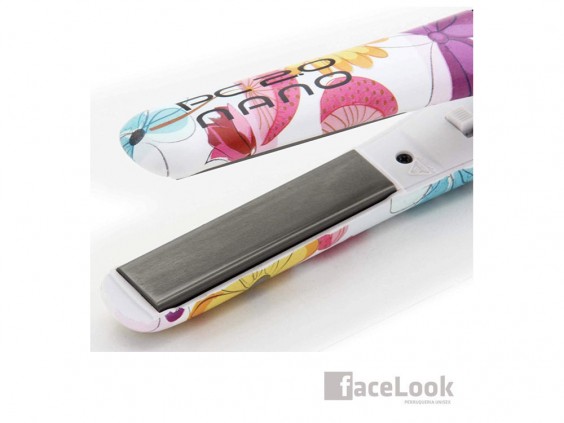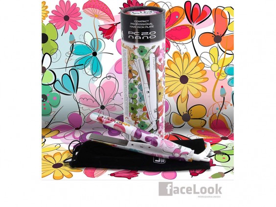 Lim hair plancha de pelo tamaño viaje PC 2.0 nano flores. Fabricada en un tamaño compacto, de tan solo 20 centímetros, que facilita su movilidad. Esta plancha de pelo, es ideal para alisar el cabello, retocar raíces, flequillos, etc…Sus placas son oscilantes y basculantes, con lo cual, facilita mucho el trabajo. Sus placas de tecnología titanium, permiten alisar o rizar cabellos secos o ligeramente húmedos. Lleva un interruptor de encendido y una luz led roja indicativa. La plancha de viaje PC 2.0 nano de lim hair, alcanza una temperatura máxima de 220º centígrados. Sus placas son deslizantes y anti frizz.