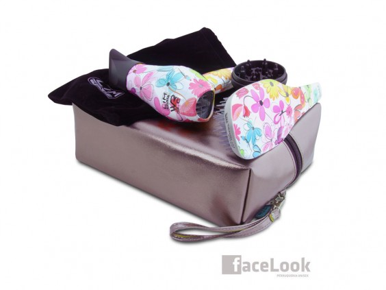 Lim hair WR pack W’22 estampado flores. Está compuesto de un secador de viaje WR 3.0 y un cepillo tanglim free, estampado flores a juego. Dos herramientas de peluquería, ideales para llevar de viaje o al gimnasio. Trae un neceser de transporte de color cobre metálico, para guardarlas. Nos podemos alisar, secar o cualquier look que deseemos, con muy poco esfuerzo.