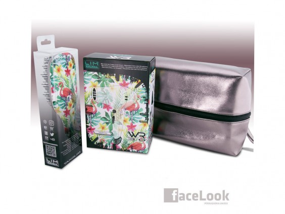Lim hair WR pack W’22 estampado tropical. Está compuesto de un secador de viaje WR 3.0 y un cepillo tanglim free, estampado tropical a juego. Dos herramientas de peluquería, ideales para llevar de viaje o al gimnasio. Trae un neceser de transporte de color cobre metálico, para guardarlas. Nos podemos alisar, secar o cualquier look que deseemos, con muy poco esfuerzo.