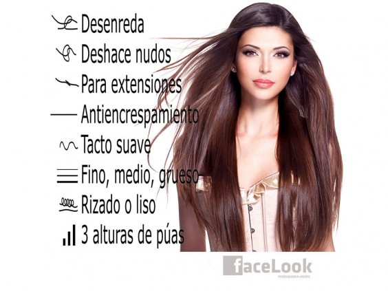 Perfecto para cabellos con nudos o enredos. Fabricado con tres alturas diferentes de púas, con una gran flexibilidad.