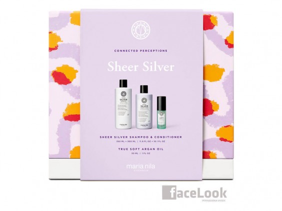 Maria Nila sheer silver caja de regalo. Especialmente indicado para neutralizar los tonos amarillentos y realzar los reflejos naturales. Lleva un champú y un acondicionador de tamaño normal y te llevas de regalo el aceite de argán true soft de 30 ml. Contiene un aroma floral de jazmín, violeta, naranja y pomelo. True soft argán oil, con un aroma suave a vainilla, rosa y jazmín. Sus cajas pueden ser utilizadas para guardar cosas, una vez consumidos los productos. Producto 100% vegano y sin maltrato animal.