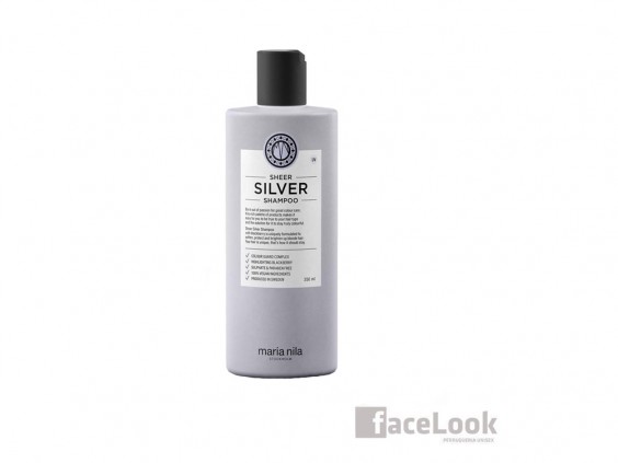 Aplicar el champú maria nila sheer silver, sobre el cabello húmedo realizando un suave masaje y enjuagar. Se recomienda realizar un segundo lavado.