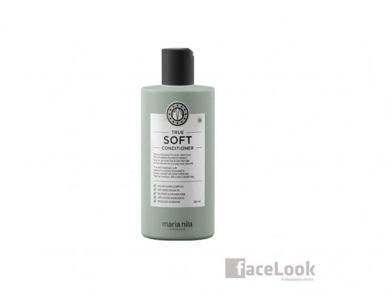 Maria nila true soft acondicionador. Un acondicionador ideal para cabello muy seco, ya que suaviza e hidrata. Evita el encrespamiento y la electricidad estática. Compuesto con aceite de argán para suavizar. Sus ácidos grasos y antioxidantes, ayudan a fortalecer el cabello y conservar la humedad. True soft acondicionador de Maria nila, tiene un suave aroma a vainilla, rosa y jazmín. Color Guard Complex, que preserva el color del cabello, protegiéndolo de la radiación UV y de los radicales libres.