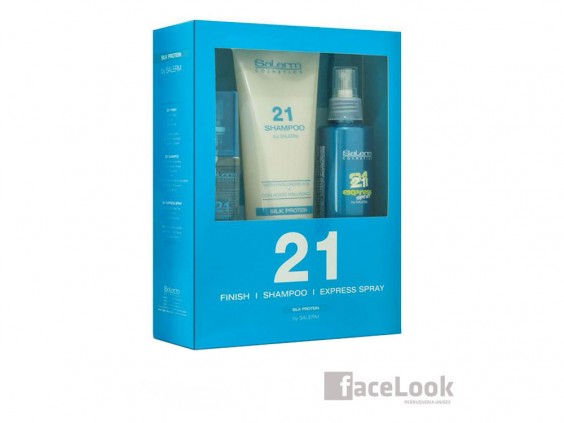 Este pack está compuesto por el champú con ácido hialurónico, la mascarilla sin aclarado salerm 21 express y el finish salerm 21, como un final.