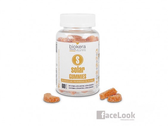 Salerm biokera natura vitamins solar gummies. Complemento nutricional, que ayuda a mantener la pigmentación de la piel. Está compuesto a base de vitamina A, carotenos y cobre, además de edulcorantes, para mantener la pigmentación y proteger las células del estrés y del daño oxidativo, que provoca el sol.