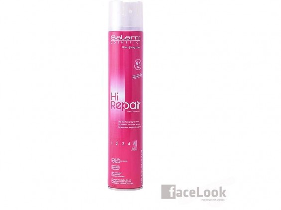 Salerm cosmetics laca hi repair fijación extra fuerte. Esta es la primera laca que repara, da brillo, y fija el peinado.