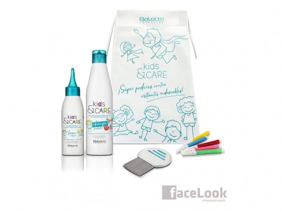 Salerm kids&care pack eliminación piojos. Este tratamiento está compuesto de un champú y una loción antipiojos. Elimina en una sola aplicación los piojos vivos y desprende con mayor facilidad las liendres. Estos productos ayudan a desenredar, suavizar y acondicionar el cabello de los peques. Su uso no solo elimina y evita la aparición de piojos o liendres, sino que también tenemos un pelo más cuidado, limpio y suave. El champú lleva aceite esencial que protege y limpia en profundidad.