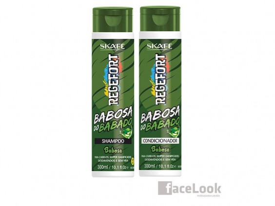 Skafe regefort babosa do babado champú y acondicionador. Indicado para cualquier tipo de cabello, en especial los grasos, encrespados o dañados. Producto sin sal, que controla la oleosidad, combate las puntas abiertas y da brillo. Compuesto con activos de aloe vera vegetal, que da nutrición y regenera, evitando el encrespamiento, gracias a sus proteínas, vitaminas y minerales, para obtener un cabello más fuerte.