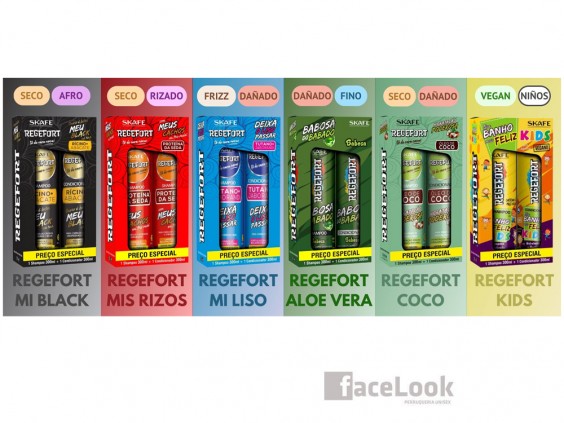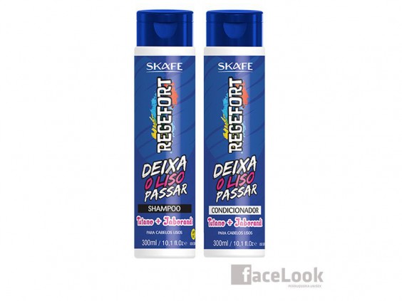Skafe regefort deja mi liso pasar champú y acondicionador. Indicado para cualquier tipo de cabello, en espacial para los alisados, encrespados o que quieren un liso de larga duración. Hidrata en profundidad, sella y facilita el peinado. Entre sus componentes se encuentra el tuétano, que es rico en elastina y colágeno, para evitar la pérdida de agua y reparar la fibra capilar, además de proteger de los posibles daños externos. El jaborandi evita la caída, da brillo y regula la oleosidad del cuero cabelludo. Producto sin sal, que fortalece, sin apelmazar y deja el cabello disciplinado.