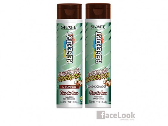 Skafe regefort hidratación poderosa champú y acondicionador. Indicado para cualquier tipo de cabello, en especial los secos o con tratamientos químicos, que necesiten hidratación. Melena sedosa, y con un brillo intenso, gracias a su aceite de coco vegetal, prensado en frio. Combate las puntas abiertas, no contiene sal y reduce el encrespamiento. Sus principios activos de coco vegetal, nutre la capa más interna del cabello.