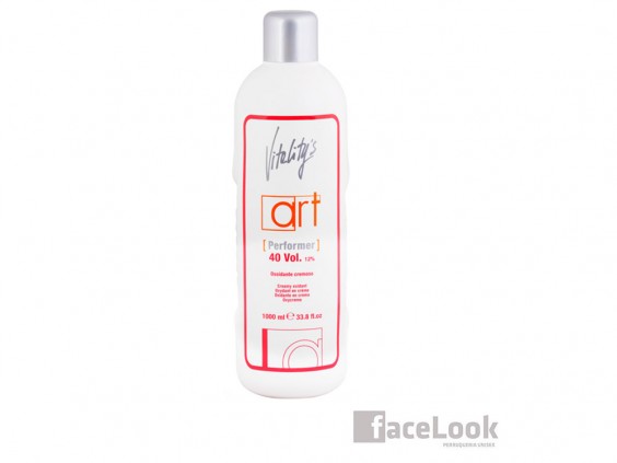 Vitality's art performer oxidante en crema 40% volúmenes. Es un producto muy estable y ligeramente perfumado. Expresamente creado para ser mezclado con los decolorantes y coloraciones de Vitality's, asegurando duración y estabilidad de los colores. Vitality's art performer es una oxigenada en crema que consigue una mezcla cremosa y suave. No gotea durante la aplicación.