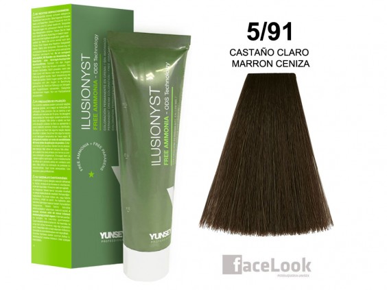 Yunsey tinte de pelo ilusionyst free ammonia 5/91 castaño claro marrón ceniza. Coloración en crema sin amoniaco.