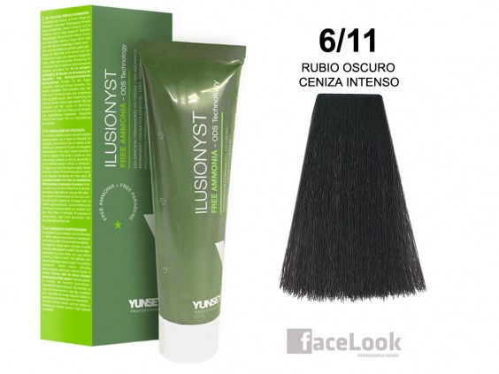 Yunsey tinte de pelo ilusionyst free ammonia 6/11 rubio oscuro ceniza intenso. Coloración en crema sin amoniaco.
