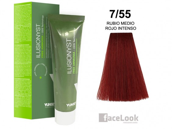 Yunsey tinte de pelo ilusionyst free ammonia 7/55 rubio medio rojo intenso. Coloración en crema sin amoniaco.