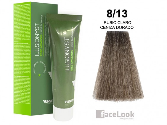 Yunsey tinte de pelo ilusionyst free ammonia 8/13 rubio claro ceniza dorado. Coloración en crema sin amoniaco.