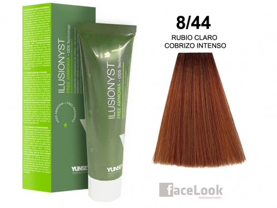 Yunsey tinte de pelo ilusionyst free ammonia 8/44 rubio claro cobrizo intenso. Coloración en crema sin amoniaco.