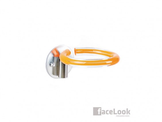 Soporte bifull para secador de pelo naranja. De fácil colocación, con un aro para dejar el secador de pelo.