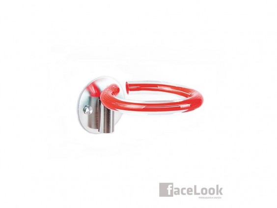 Soporte bifull para secador de pelo rojo. De fácil colocación, con un aro para dejar el secador de pelo.