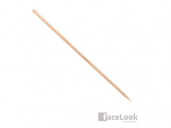 Palito de naranjo baja pieles. Indicado para bajar o empujar la cutícula. Se consigue dar una mayor amplitud a la uña. Puede limpiarse la suciedad del interior de las uñas. Doble extremo, uno acabado en punta y el otro en forma plana. Con la ayuda de un algodón en el extremo, se pueden limpiar los restos de esmalte. Medida de 12 centímetros de largo.