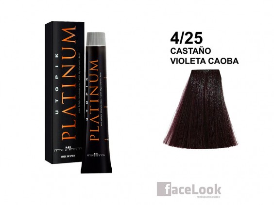 Tinte de pelo hipertin utopik platinum 4/25 castaño violeta caoba. Una de las firmas de tinte profesional, que mejor cuidan el cabello y los colores, siendo considerada una de las mejores marcas del mercado. Estos tintes tienen una cobertura del cabello perfecta.