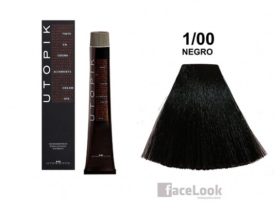 Tinte de pelo hipertin utopik 1/00 negro. Una de las firmas de tinte profesional, que mejor cuidan el cabello y los colores, siendo considerada una de las mejores marcas del mercado. Estos tintes tienen una cobertura del cabello perfecta.