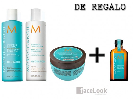 Moroccanoil pack hidratación hydration. Un pack de moroccanoil, que está compuesto por champú hidratación, acondicionador hidratación, mascarilla hidratación intensa y tratamiento de aceite de argán de regalo. Ideal para nutrir, suavizar y fortalecer el cabello. Cuida el cabello con la máxima hidratación, gracias a sus antioxidantes, la vitamina E y las algas rojas. Restaura el brillo y la suavidad dejándolo más manejable.